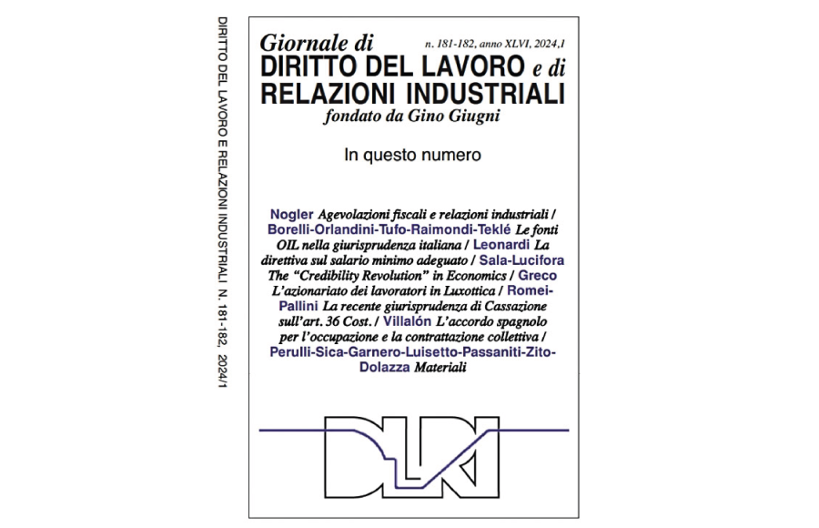 Articolo di Salvo Leonardi pubblicato sul Fascicolo 181-182/2024 de Il Giornale di Diritto del Lavoro e di Relazioni Industriali.