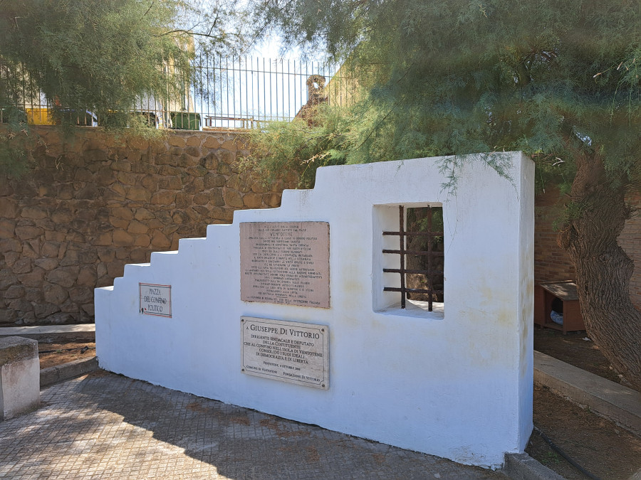 Nel corso della mattinata, dopo l'incontro della delegazione CGIL con l'amministrazione del comune di Ventotene, c'è stato l'omaggio floreale al monumento dedicato ai confinati politici. Quel monumento fu realizzato dall’Anpi nel 1978 grazie anche ai finanziamenti della Provincia di Perugia, e nel 2008 la Fondazione Di Vittorio appose una targa in ricordo dei confinati nell’isola, tra i quali c’era lo stesso Giuseppe Di Vittorio.
