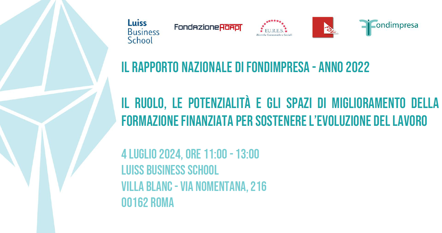 L'evento, intitolato "Il ruolo, le potenzialità e gli spazi di miglioramento della formazione finanziata per sostenere l'evoluzione del lavoro", avrà luogo presso la prestigiosa sede della Luiss Business School a Villa Blanc, in Via Nomentana 216, Roma.