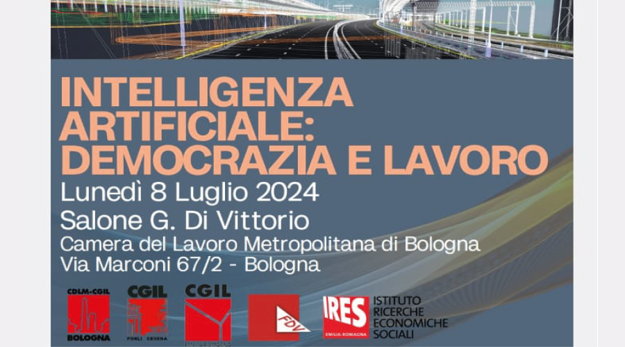 Lunedì 8 luglio 2024, dalle 14.00 alle 18.00, presso la CGIL di Bologna si svolgerà il convegno "INTELLIGENZA ARTIFICIALE: DEMOCRAZIA E LAVORO". Organizzato dalla CDLM-CGIL di Bologna, dalla CDLT-CGIL di Forlì-Cesena, dalla CGIL Emilia Romagna, dalla Fondazione Giuseppe Di Vittorio e dall'IRES Emilia Romagna, l'evento precederà il G7 sull'Intelligenza Artificiale (IA), in programma a Bologna dal 9 all'11 luglio 2024.