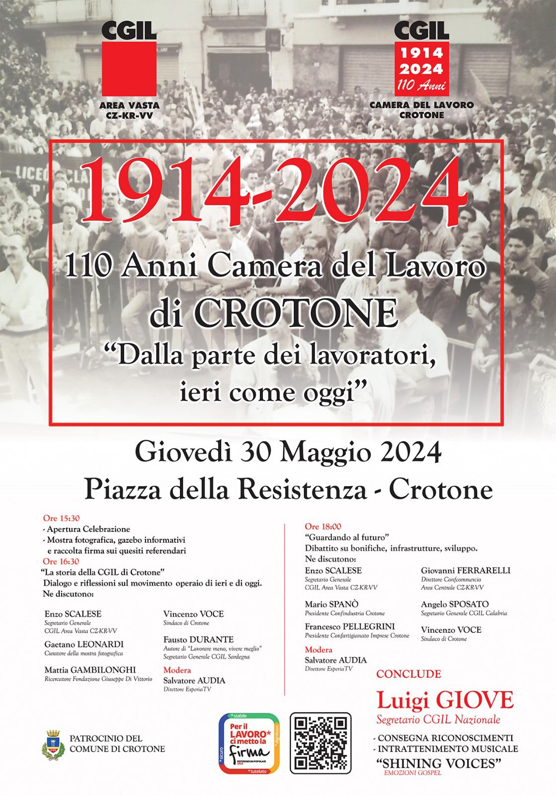 La Camera del Lavoro di Crotone celebra i suoi 110 anni, dialogando in piazza con la cittadinanza a proposito di storia, sfide e prospettive.