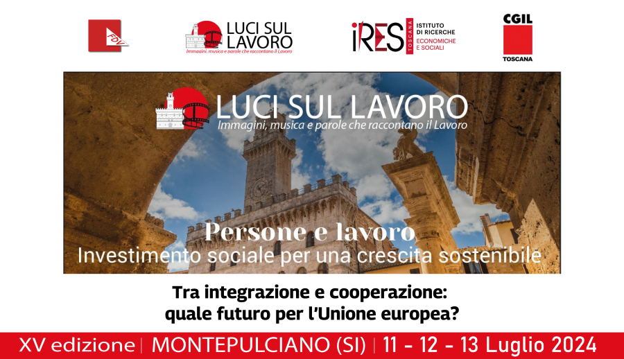 A Montepulciano, nell'ambito della XV edizione di 'Luci sul lavoro - Immagini, musica e parole che raccontano il lavoro' si svolgerà, nel pomeriggio del giorno 11 luglio, l'iniziativa dal titolo 'Tra integrazione e cooperazione: quale futuro per l'Unione Europea?'