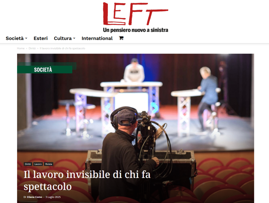 Segnaliamo l'articolo di Eliana Como, ricercatrice FDV-FIOM "Il lavoro invisibile di chi fa spettacolo", originariamente pubblicato su Left a questo link.