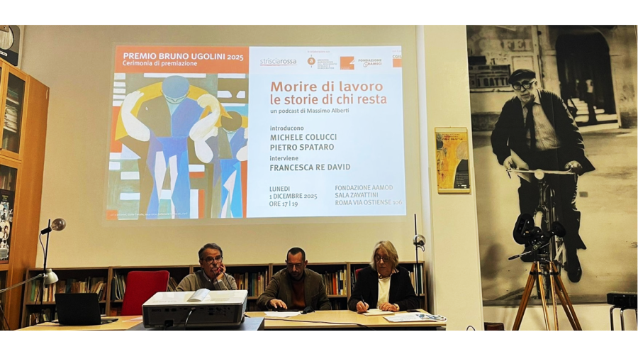 Si è svolta lunedì 1 dicembre la cerimonia conclusiva del Premio Bruno Ugolini, giunto quest'anno alla sua seconda edizione, presso la sede dell’Aamod, tra i promotori dell’iniziativa insieme all’Associazione Strisciarossa, la Fondazione Di Vittorio, la Fondazione Gramsci, e con il patrocinio della CGIL.