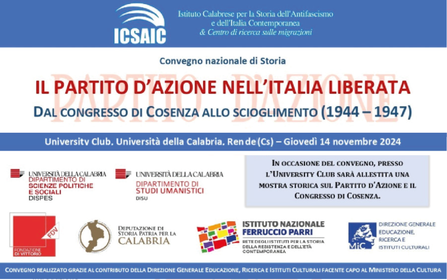 L'evento è organizzato dall’ICSAIC - Istituto Calabrese per la Storia dell'Antifascismo e dell'Italia Contemporanea & Centro di Ricerca sulle migrazioni, in occasione dell’ottantesimo anniversario del primo congresso nazionale del Partito d’Azione che si tenne a Cosenza dal 4 al 7 agosto del 1944.