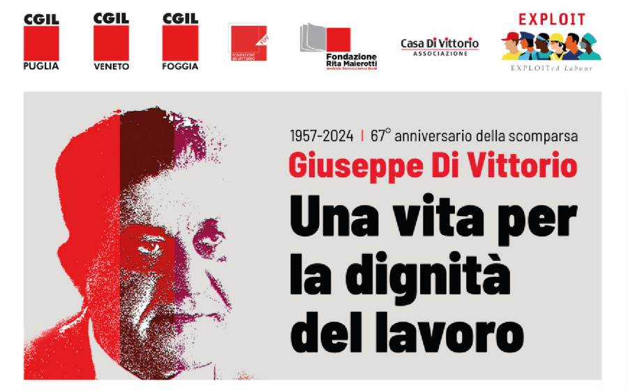 L’evento, dal titolo “Giuseppe Di Vittorio: una vita per la dignità del lavoro”, è stato organizzato da Cgil Puglia, Cgil Veneto, Cgil Foggia, Fondazione Di Vittorio, Fondazione Rita Maierotti e Progetto Exploit.